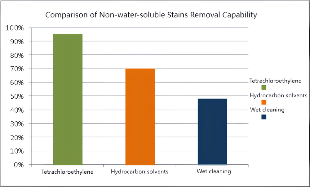 Tetrakloorieteeni on historiallinen ja yleinen kuivapesuliuotin. Sillä on vahva kyky poistaa tahroja ja se on suhteellisen turvallinen. Tetrakloorietyleenillä on kuitenkin tietty haihtuvuus ja ärsyttävä haju. Kun työskentelet tilassa, jossa on tetrakloorieteeniä, ihmisten tulee varmistaa asianmukainen ilmanvaihto. Tetrakloorietyleenin pitkäaikainen hengittäminen voi olla epämukavaa ja haitallista.