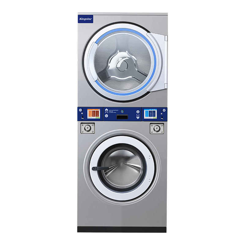 Kingstar-kolikoilla toimiva pinottu pesukone-kuivausrumpu vähentää lattiatilan käyttöä jopa 50 % verrattuna itsenäisiin yksiköihin, mikä maksimoi sijoitetun pääoman tuoton ahtaissa pesuhuoneissa. Soveltuu itsepalvelupesulomille, kouluille, huoneistoille, hotelleille ja muille.